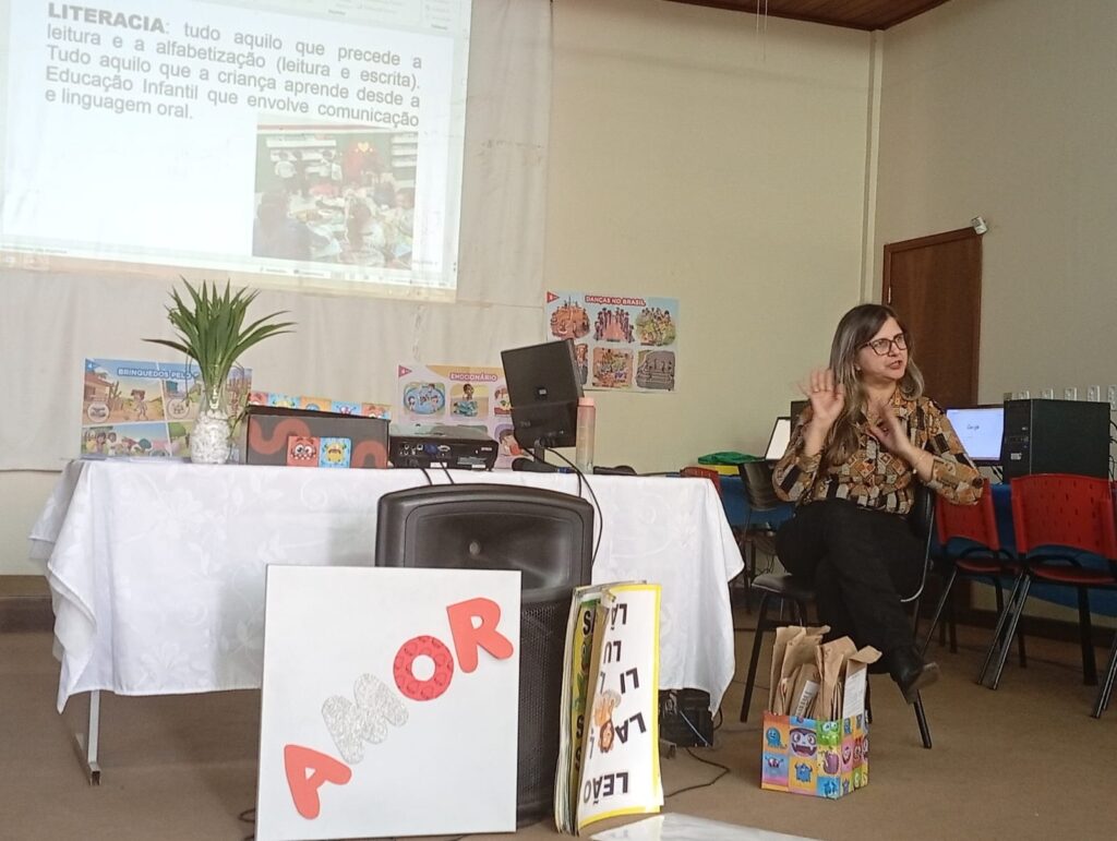 O curso, realizado em dois períodos (manhã e tarde), no Auditório da Secretaria, foi ministrado pela Coordenadora Pedagógica da Secretaria de Educação, Professora Mestre Maria Claudia Silva Jardim Selleti, responsável pela Coordenadoria de Alfabetização.