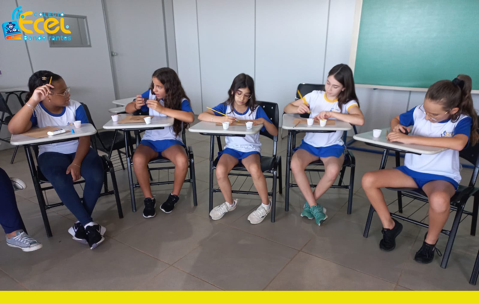 Ela ressaltou ainda que esse trabalho aguça a criatividade, além da curiosidade em produzir a própria tinha. Durante a aula, os alunos usaram pó de café, pitaya, colorau, boldo e açafrão para colorir.