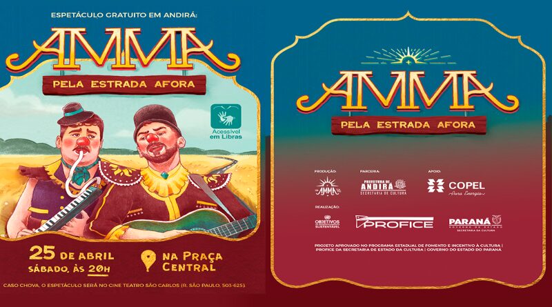 A cidade de Andirá recebe uma programação cultural especial com a chegada da Cia. AMMA, companhia de teatro e palhaçaria de Londrina, dentro do projeto “Amma pela estrada afora”.