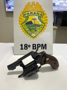 ASSAÍ: Às 22h29, uma mulher de 22 anos procurou a Polícia Militar relatando que por volta das 21h30, ao questionar seu esposo (19 anos) sobre a senha para desbloqueio de seu aparelho celular, foi agredida com socos na cabeça e na face, vindo a causar lesão nos lábios. A vítima descreveu que depois da agressão, seu esposo foi até o quarto e retornou com seu filho de 1 ano no braços, com uma arma apontada em sua direção, momento em que ela decidiu sair correndo para solicitar apoio aos seus vizinhos. A solicitante relata que ao retornar juntamente com os vizinhos para retirar seus dois filhos menores de idade (1 e 4 anos) da residência, o autor a ameaçou com os dizeres “Pense bem no que você vai fazer, porque se você me denunciar eu vou te matar e seus filhos vão ficar órfãos, é isso que você quer?”. Deste modo, a equipe de pronto deslocou até o endereço da vítima, localizado na Seção Palmital, em uma fazenda, sendo que o autor não foi localizado, todavia na residência foi possível apreender um revólver escondido sobre o forro do banheiro. Também foram realizadas buscas na casa da mãe e do pai do autor, porém sem sucesso em localizá-lo. Logo, a vítima foi encaminhada ao hospital para confecção de laudo de lesão corporal e em seguida a Delegacia, onde foi solicitada Medida Protetiva de Urgência.