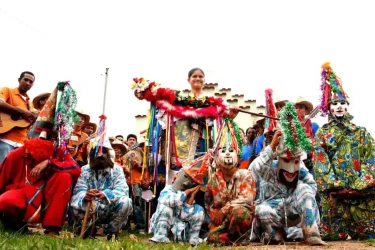 A tradição mistura elementos religiosos, folclóricos e populares, com cantorias, enfeites, personagens característicos (como os palhaços) e muita música.