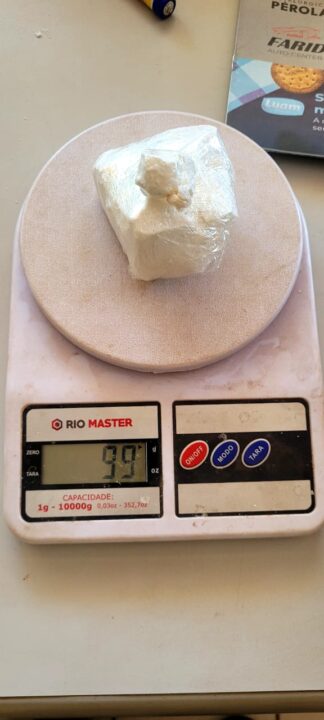 Com a permissão do morador, os policiais realizaram buscas na residência do suspeito, onde foi encontrada uma porção maior da mesma droga (94g), além de dinheiro em espécie e materiais utilizados para fracionamento e embalagem da droga. O indivíduo assumiu a propriedade dos entorpecentes e objetos.