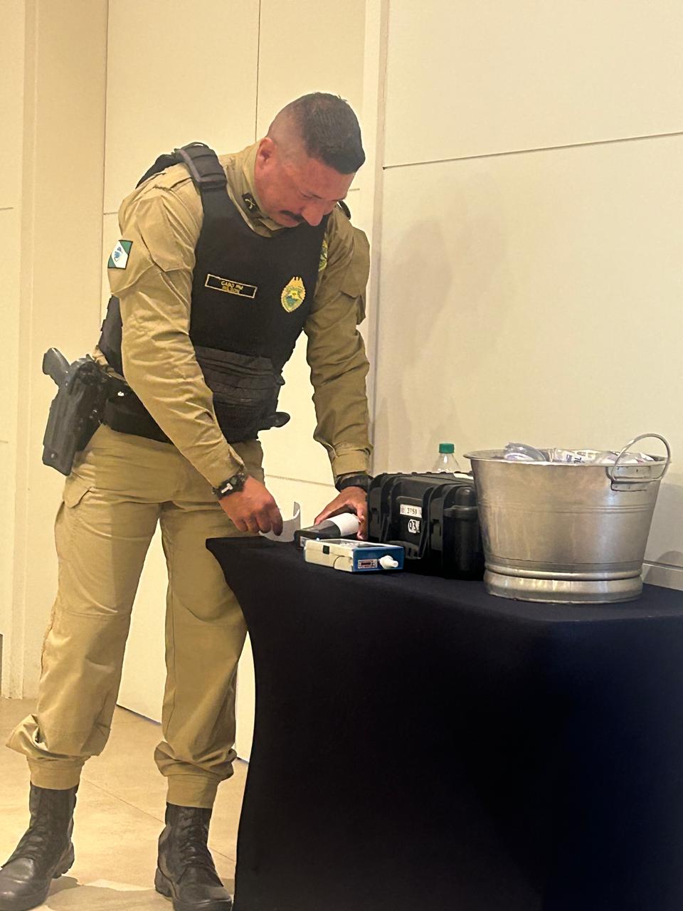 Durante a apresentação, a Polícia Militar destacou as principais causas de acidentes nas vias, alertando sobre comportamentos de risco e apresentando medidas eficazes para a redução das estatísticas de sinistralidade. Além das orientações teóricas, os participantes puderam conhecer de perto a utilização do etilômetro, equipamento fundamental no combate à embriaguez ao volante.