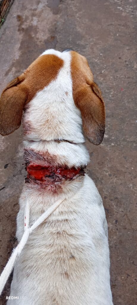 Às 9h08 da manhã, uma equipe policial foi acionada via Central de Comunicações para averiguar uma denúncia de maus-tratos na Rua Monte Alto, em Cornélio Procópio. No local, os policiais constataram a veracidade das informações: um cão estava preso por uma corrente extremamente curta, com uma ferida grave e sangrando no pescoço. O animal também estava sem água e comida, acorrentado aos pés de um tanque.