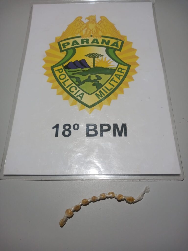 Na quinta-feira (23), em São Sebastião da Amoreira, um adolescente já conhecido pela polícia foi flagrado tentando se desfazer de um objeto ao perceber a aproximação da viatura, na Avenida Antônio Francishini. O material dispensado foi localizado e identificado como nove pedras de crack. O jovem foi encaminhado à Delegacia de Polícia Civil, acompanhado pela mãe.
