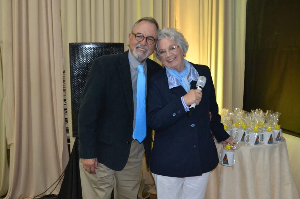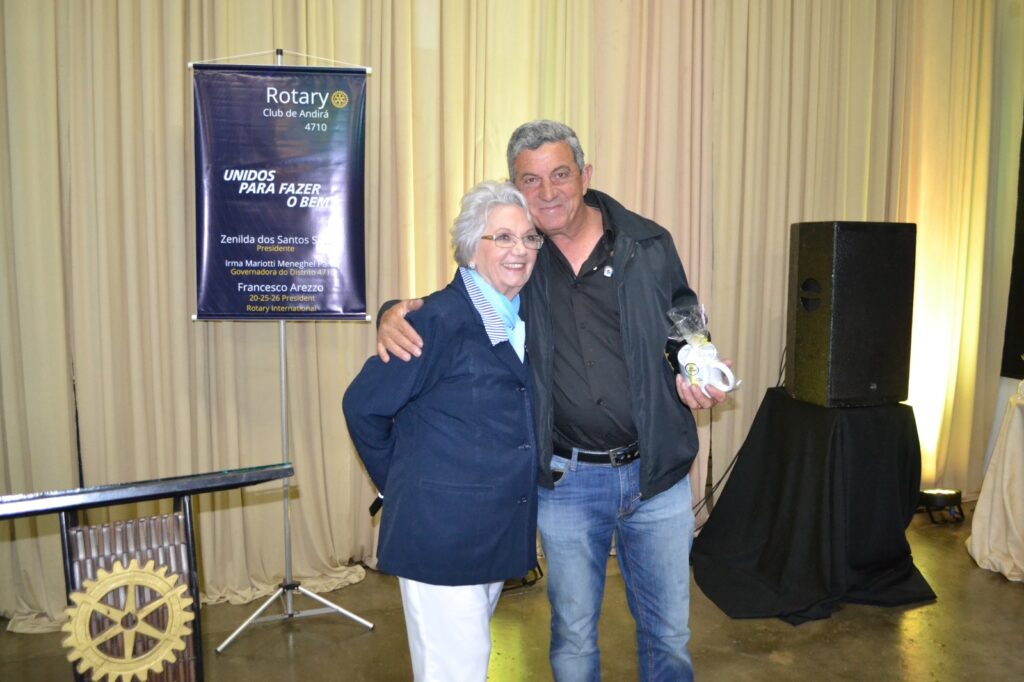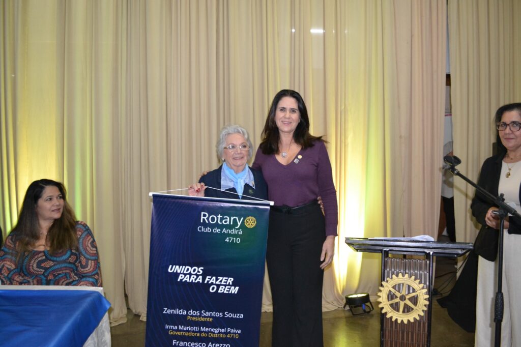 A solenidade foi marcada por momentos de união, compromisso e inspiração rotária, contando com a ilustre presença da Governadora do Distrito 4710, gestão 2025/2026, Irma Alves Braga Mariotti Meneguel Paiva, acompanhada de seu esposo Armando Meneguel Paiva.