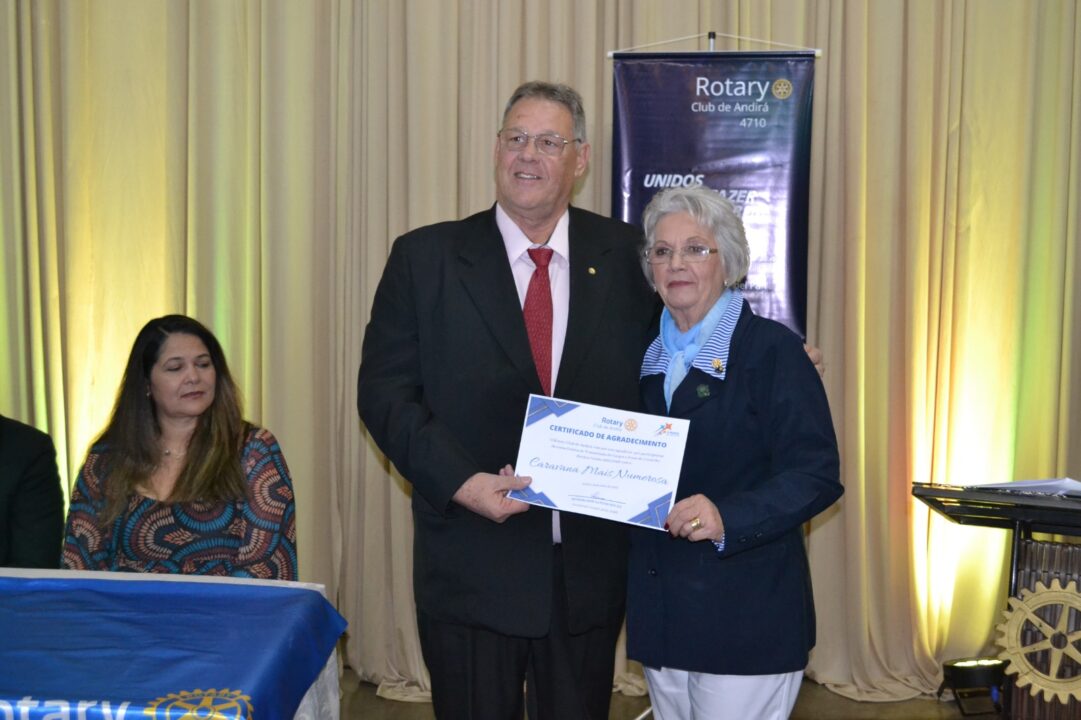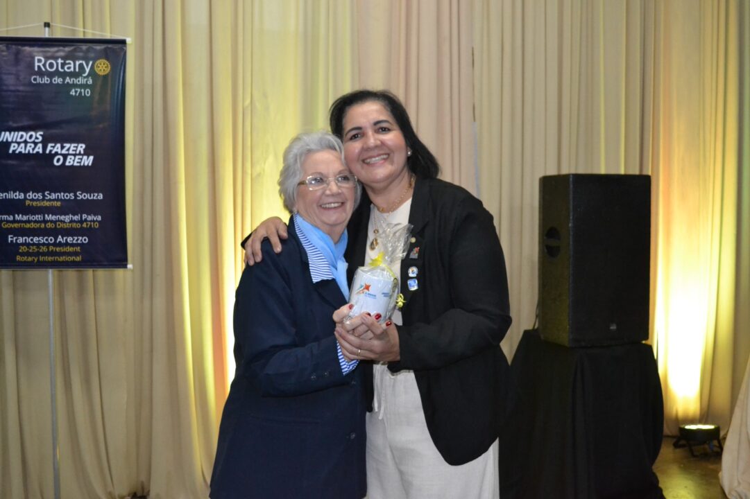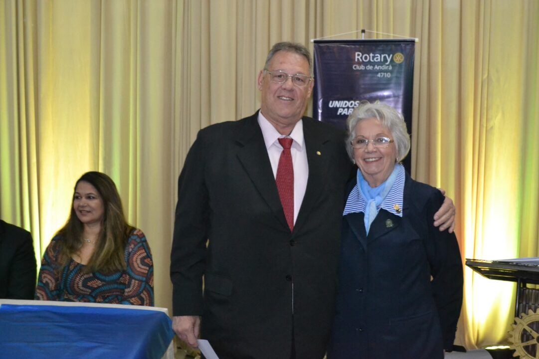 A solenidade foi marcada por momentos de união, compromisso e inspiração rotária, contando com a ilustre presença da Governadora do Distrito 4710, gestão 2025/2026, Irma Alves Braga Mariotti Meneguel Paiva, acompanhada de seu esposo Armando Meneguel Paiva.