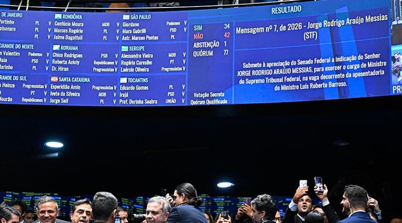 O Senado Federal protagonizou um momento histórico na política brasileira nesta quarta-feira (29), ao rejeitar a indicação de Jorge Rodrigo Araújo Messias para o cargo de ministro do Supremo Tribunal Federal (STF). O placar final foi de 42 votos contrários e 34 favoráveis, número insuficiente para atingir o mínimo de 41 votos necessários para a aprovação.